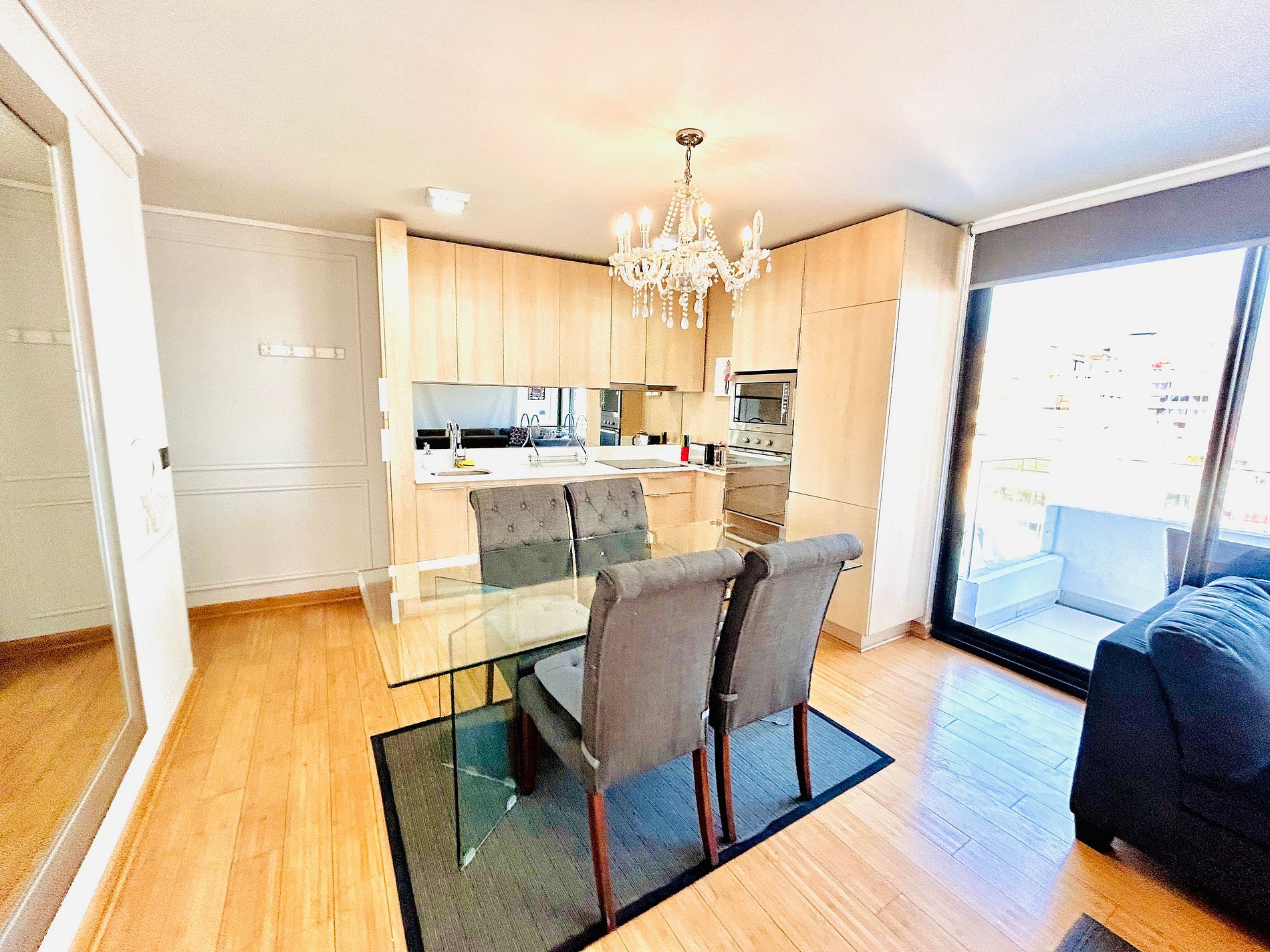 Estarás en el corazón de Las Condes, uno de los barrios más exclusivos y seguros de Santiago. El edificio Málaga 79 está ubicado en una calle tranquila, a pasos de restaurantes, cafeterías, supermercados y estaciones de metro como Alcántara y El Golf. Es el punto ideal tanto para viajeros de negocios como para quienes quieren explorar la ciudad con comodidad y estilo. Este departamento combina diseño moderno con funcionalidad. Cuenta con espacios luminosos, una cocina equipada, balcón privado y detalles pensados para tu confort. El edificio ofrece seguridad 24/7, estacionamiento privado y áreas comunes impecables. Es un oasis urbano donde cada rincón está diseñado para que te sientas como en casa. Desde el momento en que llegues, sentirás la tranquilidad de un espacio limpio, acogedor y bien equipado. Tendrás acceso a Wi-Fi rápido, Smart TV, ropa de cama de calidad hotelera y una cocina lista para tus comidas favoritas. Además, estarás rodeado de servicios y transporte, lo que hace que moverse por Santiago sea fácil y eficiente.