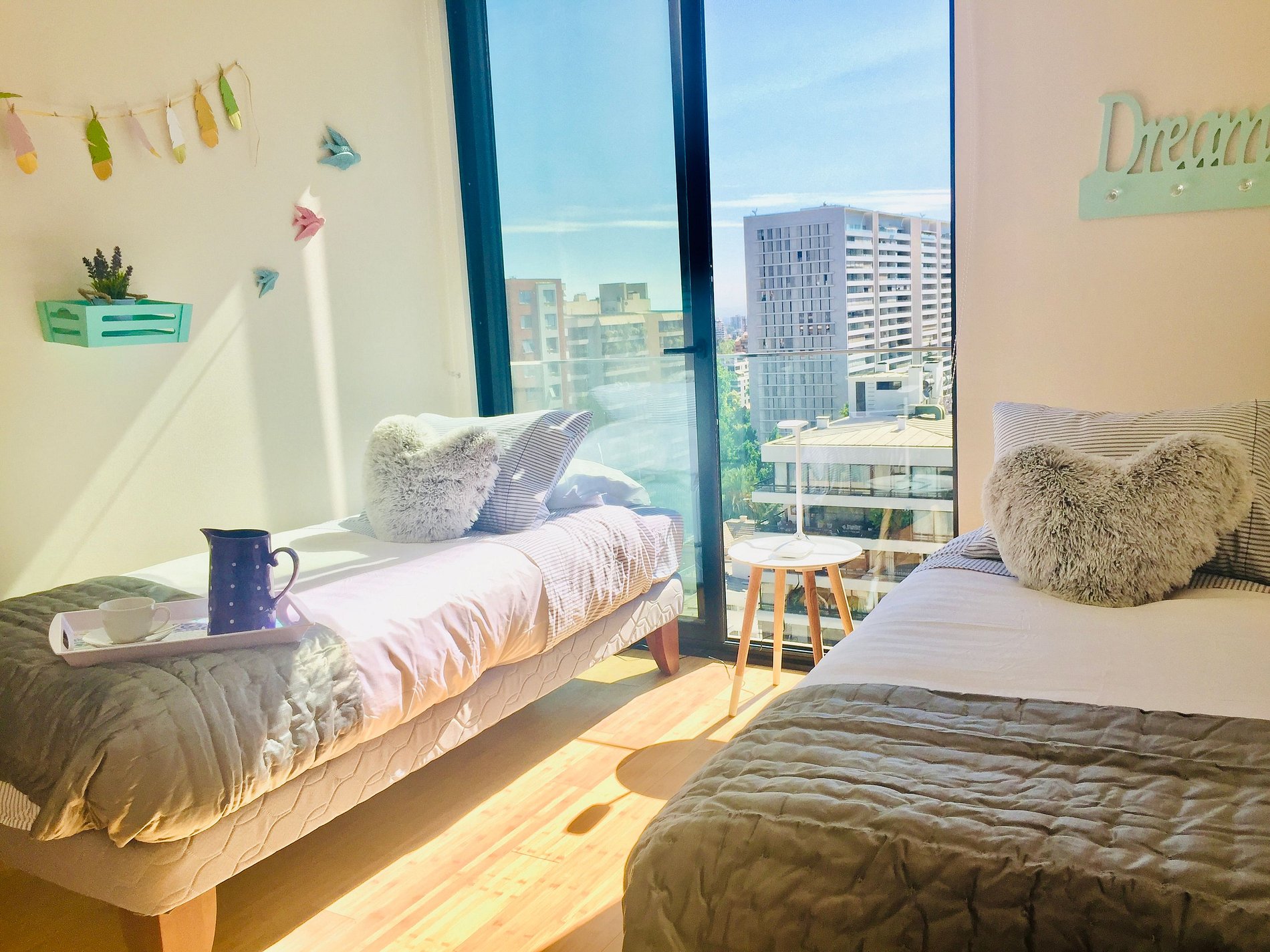 El edificio cuenta con conserjería 24 horas, lo que garantiza seguridad y asistencia en todo momento. Al llegar, los huéspedes deben registrarse con el conserje, quien les entregará las llaves convencionales del departamento. Además, el departamento cuenta con doble chapa: una chapa electrónica cuya clave será enviada internamente por el anfitrión antes del check-in, y una llave física para mayor seguridad. Estacionamiento El estacionamiento privado está ubicado dentro del edificio, en el subterráneo nivel -5, con acceso directo por ascensor. Al llegar al edificio, la entrada al estacionamiento se encuentra al costado del hall central. Los huéspedes deben anunciarse a través del citófono para que el conserje les abra el portón eléctrico. Luego, deben dirigirse al hall principal para registrarse, entregar sus datos y recoger la llave física del departamento. Lavandería La lavandería se encuentra en el nivel -1 y funciona con monedas o fichas. Es de uso compartido y está disponible para todos los residentes y huéspedes. Áreas comunes En la azotea del edificio encontrarás espacios ideales para relajarte y disfrutar del aire libre: Piscina: El acceso a la piscina es libre para todos los residentes y huéspedes. Sin embargo, su uso está sujeto a reglas específicas que pueden variar según la temporada de verano o invierno. La piscina es al aire libre, no temperada, y ofrece una vista despejada a las montañas y la ciudad. Es perfecta para refrescarse durante los días cálidos del brillante verano santiaguino. Quinchos/barbacoas: Disponibles con reserva previa y de pago, ideales para compartir momentos especiales en un entorno exclusivo. WiFi La clave de WiFi está disponible dentro del departamento y se encuentra visible para los huéspedes. La piscina se encuentra en el último piso del edificio, con una hermosa vista. Cuenta con lavandería en el -1. Estacionamiento Zona de Barbacoas para reuniones. (previa reservación). No se aceptan mascotas No se puede fumar en espacios comunes Y accesible para personas con movilidad reducida
